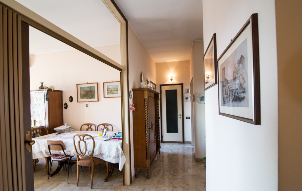 Vendita NUDA PROPRIETA’, lasciando usufrutto vitalizio al proprietario 89enne, di ampio trilocale al quinto e ultimo piano con due terrazzini e composto da ingresso, soggiorno, cucina abitabile, due camere da letto, due bagni, ripostiglio, cantina, box doppio mq 28. Molto luminoso, in zona servita e tranquilla, a 15 minuti dalla stazione, inserito in condominio signorile con giardino. Spese condominiali c.ca € 3.000 annue incluso riscaldamento.